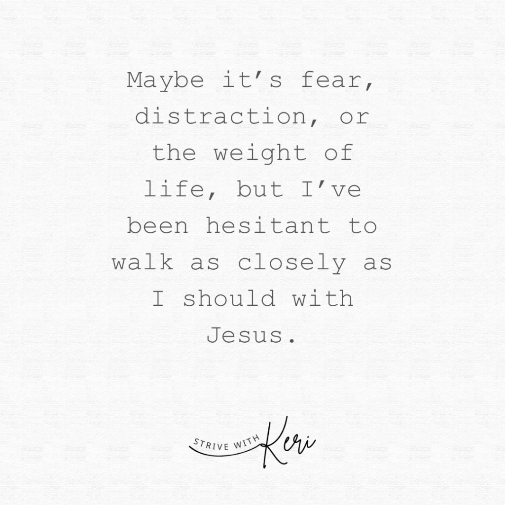 Maybe it’s fear, distraction, or the weight of life, but I’ve been hesitant to walk as closely as I should to Jesus.