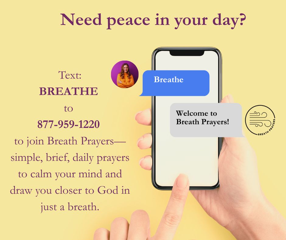Please consider joining the Breath Prayers community by text, for daily encouragement to pause and breathe!